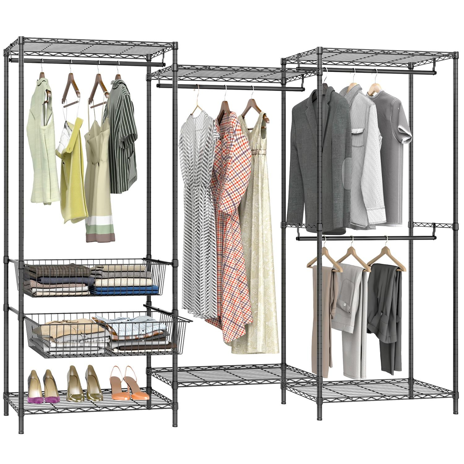 Amazon Com Vipek V10 Wire Garment Rack 5 Tiers Heavy Duty Clothes Rack With 4 Hanging Rods 6 Wire Shelves 2 Slid Storage Baskets Large Size Clothing Rack 85 8 W X 17 3